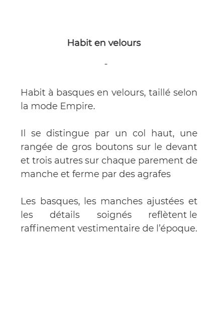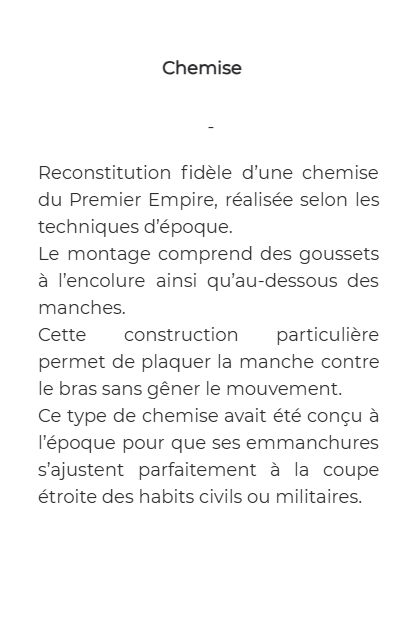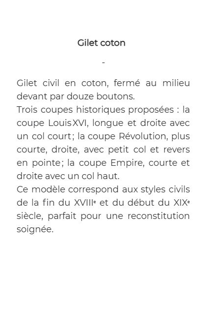 Pour la Révolution, le Consulat ou le Premier Empire, la collection Emporia vous propose une large sélection de costumes et d’accessoires de reconstitution sur mesure. Composez également votre tenue de cantinière ou de demi-solde selon vos envies.
